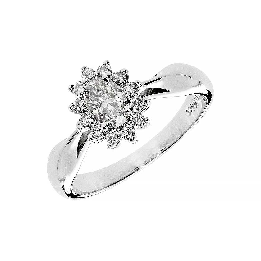 Kuldsõrmus 0,65 karaati Valge kuld 585/- Keskmine - Labori teemant 0,41 karaati  (5,4x3,7 mm) – värvus – Jager (D), – selgus – VVS2 Sõrmuse õlgadel - Labori teemantid 16 x 0,015 ct (1,5 mm) - värvus - Top Wesselton (G) - selgus - SI1 Kinkekarp Tarneaeg 2-3 päeva