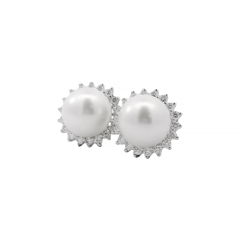 Kõrvarõngad Kuld 585/- (18Kt) 2x0,05 karaati looduslikud teemantid G-si, 2  pärlit (valge) 9-9,5  mm,
