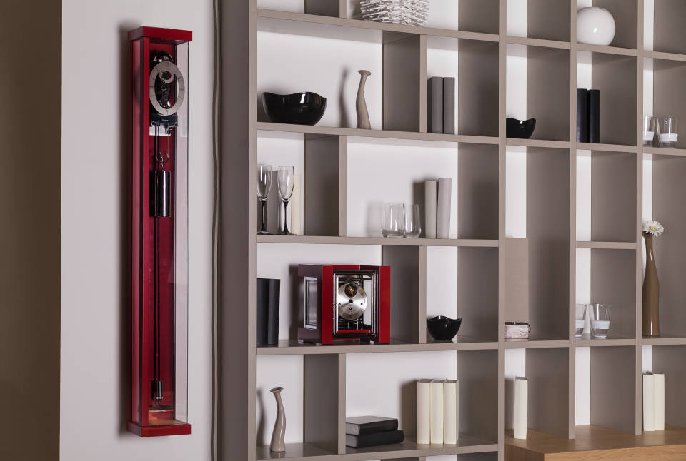 Lauakell "Kolora"   29,5 x 16,5 x 14 cm kompaktne, moderne lauakell punase, valge või musta viimistlusega asümmeetriline disain kellakapi värviga sobituvad mehhansimi pinnad ja numbrilaud tunnilöögi helin sekundi näit Hind  995,00 EUR