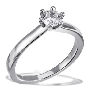 Teemantsõrmus kuld prooviga 585/- (võimalik ka kollane või roosa kuld) Briljantlihvis teemant 0,14 ct G/Si (seda mudelit on võimalik tellida ka alates 0,05 kuni 1,00 ct teemantiga) Tarneaeg 7-10 päeva
